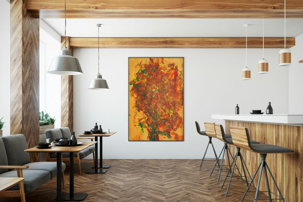 While some areas show the dancers feet, other areas display partial prints in a breathtaking color composition. These minor details combined with the dynamic movements of our talented dancers, draw the audience closer to the artwork and capture their attention. The outcome is a unique artwork full of contrasts between vibrant base colors and delicate footsteps, leading to fascinating abstract patterns, which resemble a marriage of Yves Klein’s and Jackson Pollock’s masterpieces. The magic of dance and movement is captured and immortalized in this artwork, acting as a reminder of the simplest joys of life.